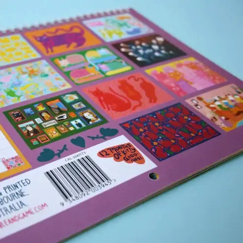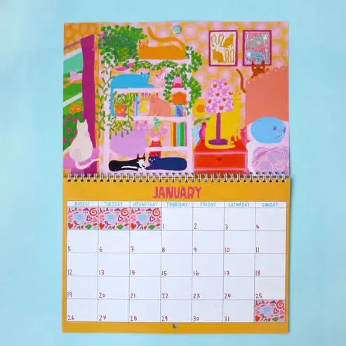 We love to fill our kitty calendar with fun and bright illustrations that will bring cat lovers joy. Each illustration is created in Procreate on the Ipad and when then print and bind the calendar in our Brunswick Studio.