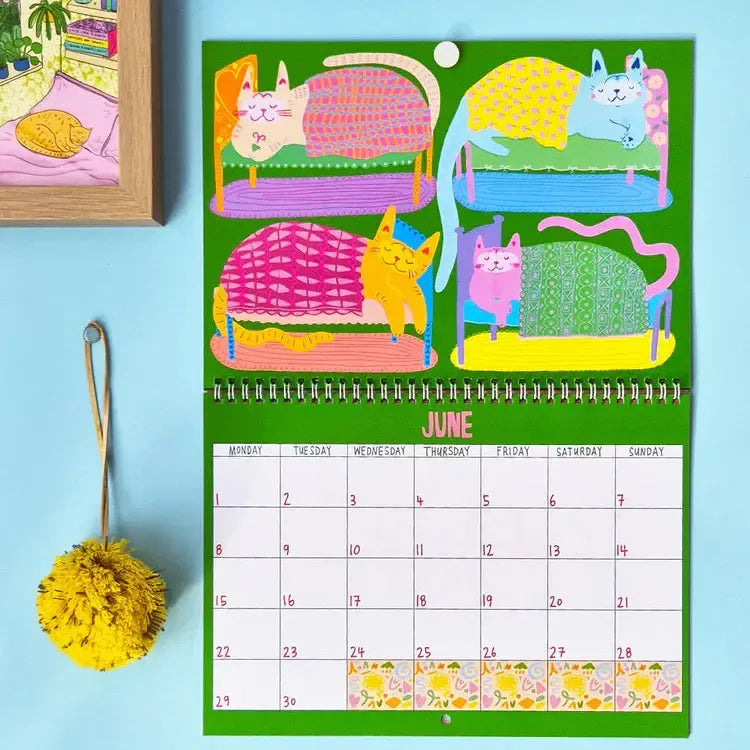 Our 2026 Kitty Calendar is full to the brim with cute cat illustrations, ready to go up on your wall and help you stay organised. When drawing this, our two kitties, Lemmy and Evie were always nearby.
