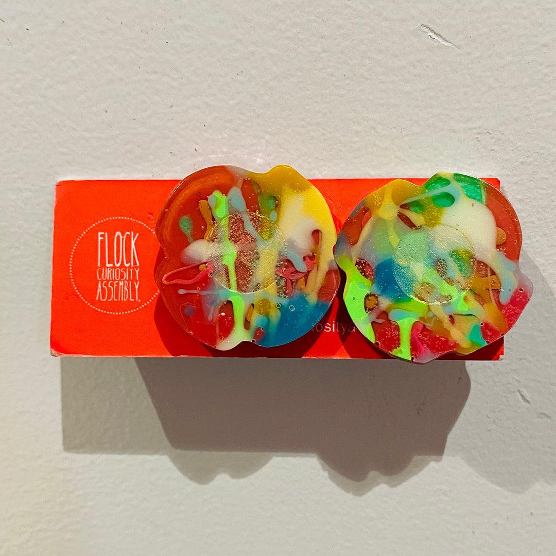 Cute & colourful multi coloured petal shape studs - perfect for adding a bit of fun to the everyday