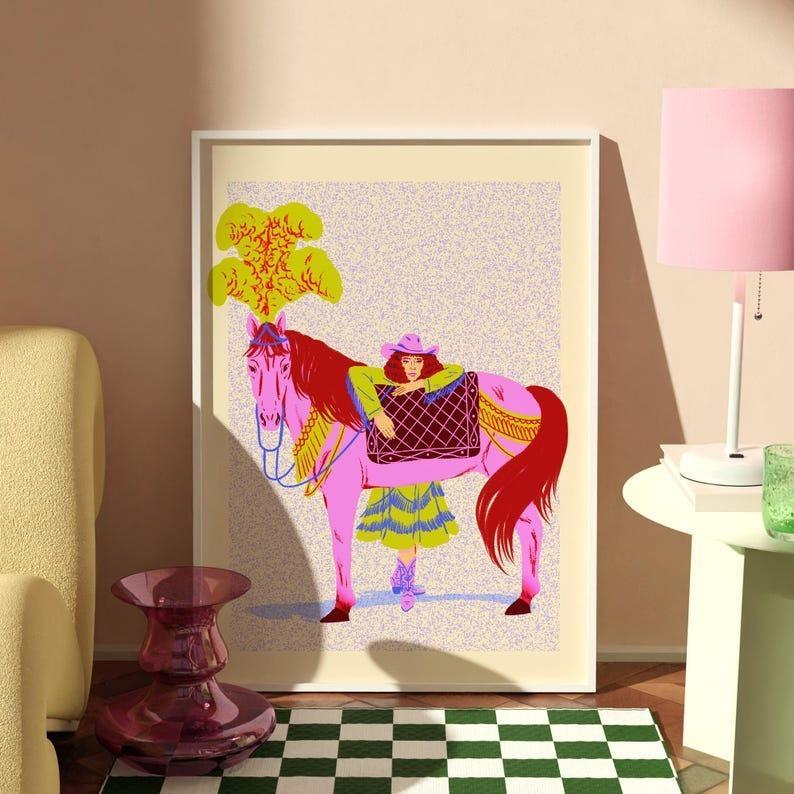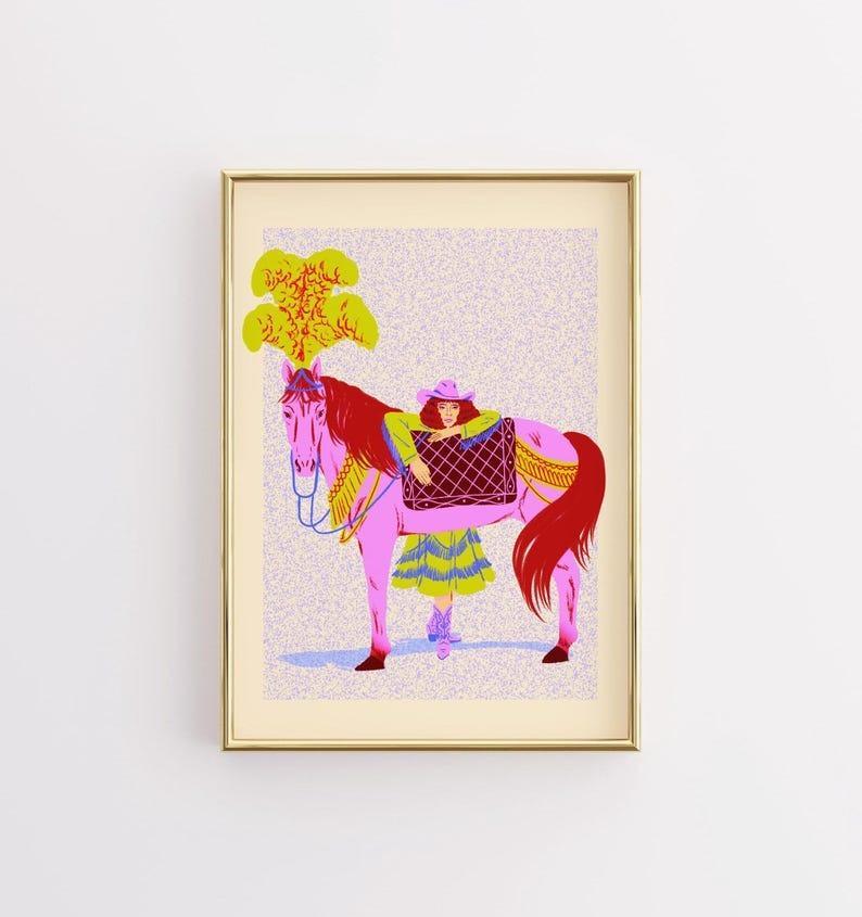 Pink Pony Print is printed on 300gsm silk stock with a slight shine. She is printed locally and wrapped with love by me. Please keep her out of direct sunlight to maintain her longevity.