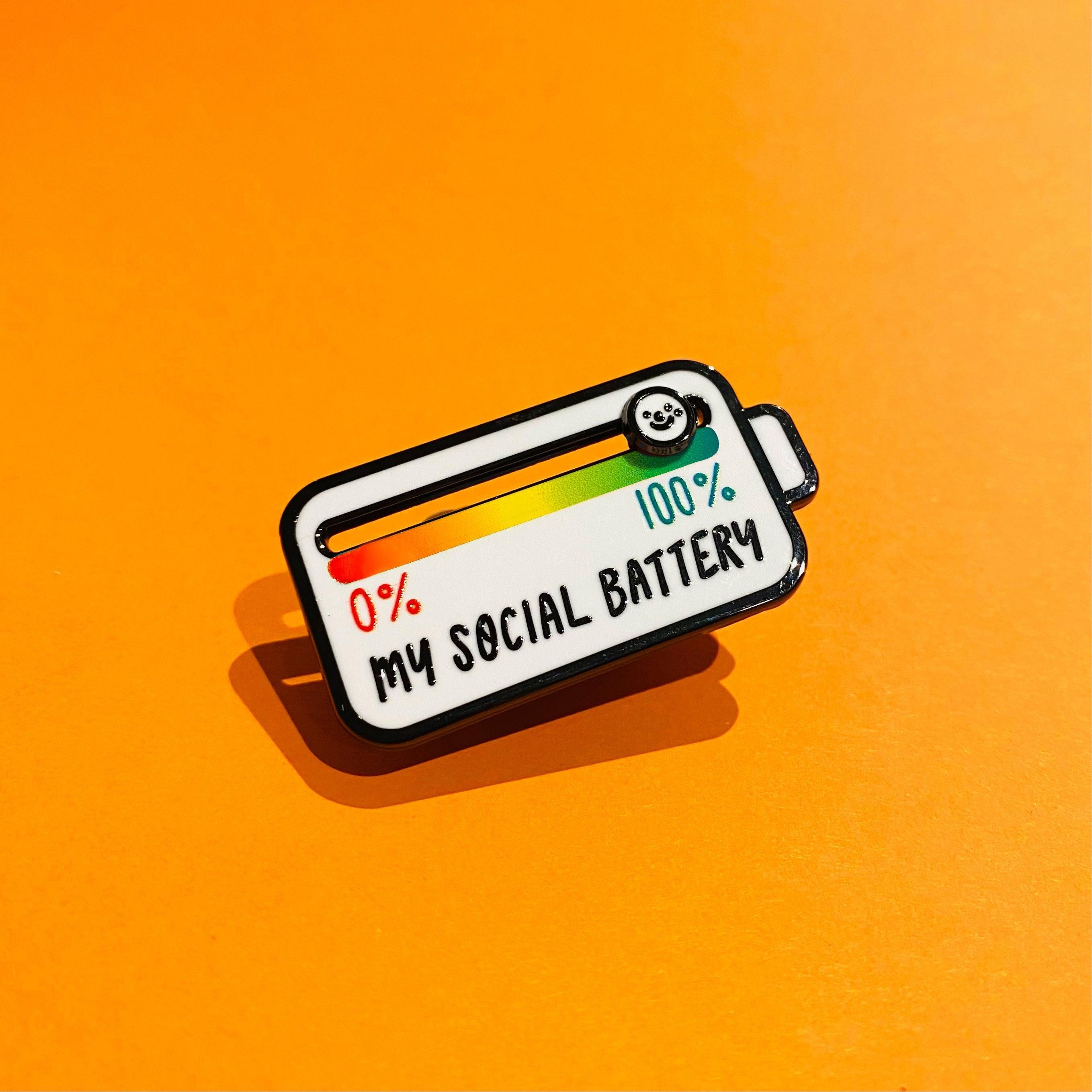 Special Interactive Pin: Sliding left or right to indicate your social battery level at a social event or party without saying it out loud! Pin designed by Yan Yan Candy Ng in Melbourne, Australia.