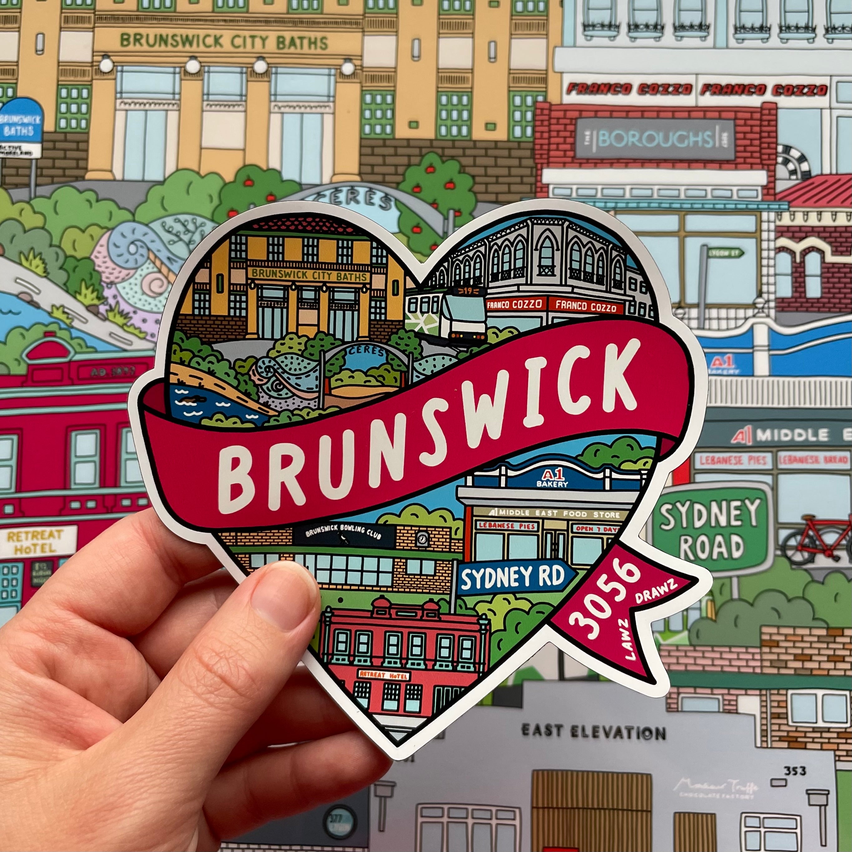 High quality full colour magnet featuring the suburb heart artwork. The perfect addition to any fridge!