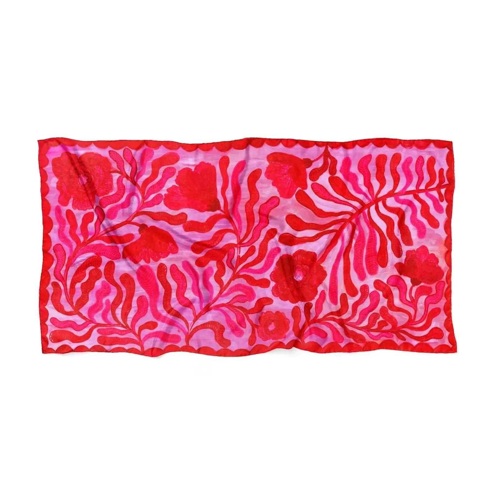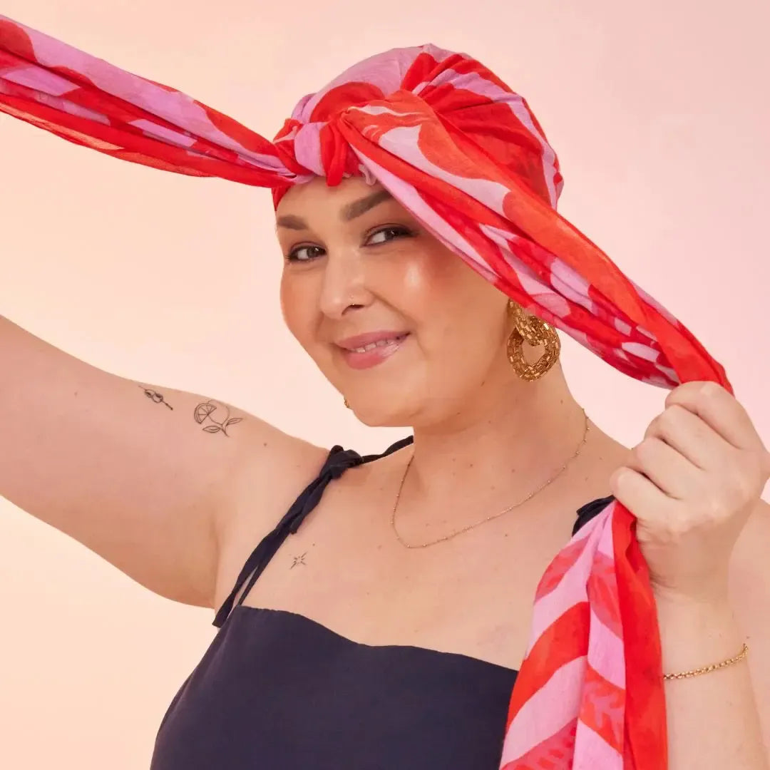 Czech artist Ludmila Linhartová of DJV studio uses contrasting colours to capture the delicate dance between strength and tenderness in every woman. With blooming flowers inspired by Henri Matisse, this scarf is a tribute to cancer warriors who fight to heal, grow, and bloom again.