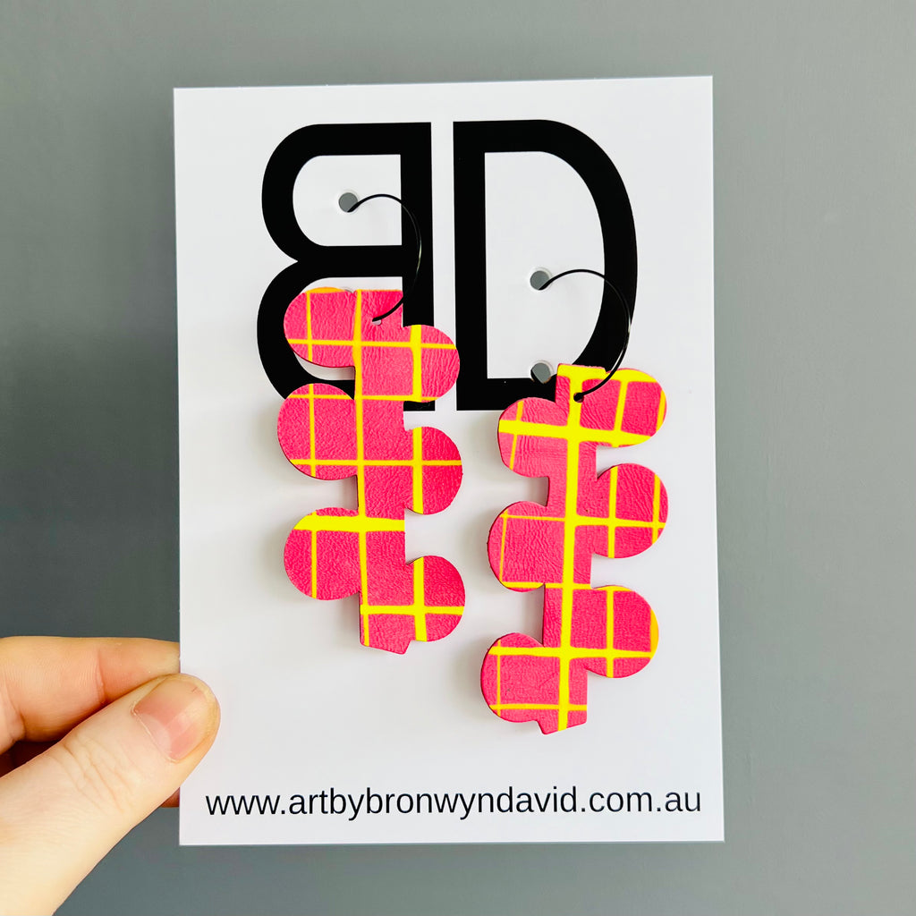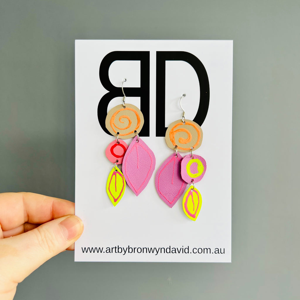 Bronwyn is a contemporary Indigenous artist who turns her paintings into wearable art. Using acrylics, mixed media and leather, her earrings and accessories celebrate ancestry, land and waterways - each piece a vibrant, textured work that makes a statement and adds cultural meaning to your collection.