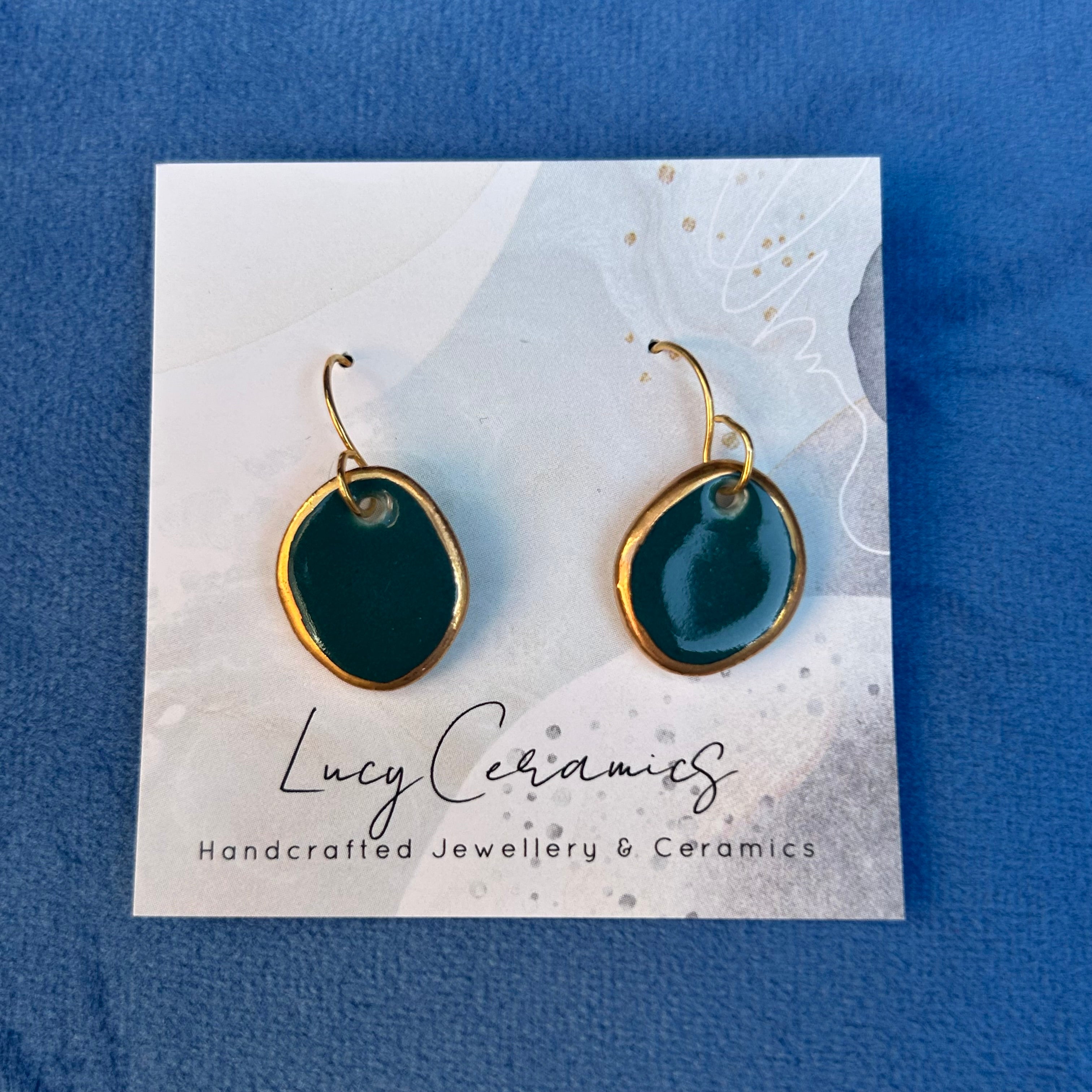 Dark Green Porcelain small organic shapes drop earrings
