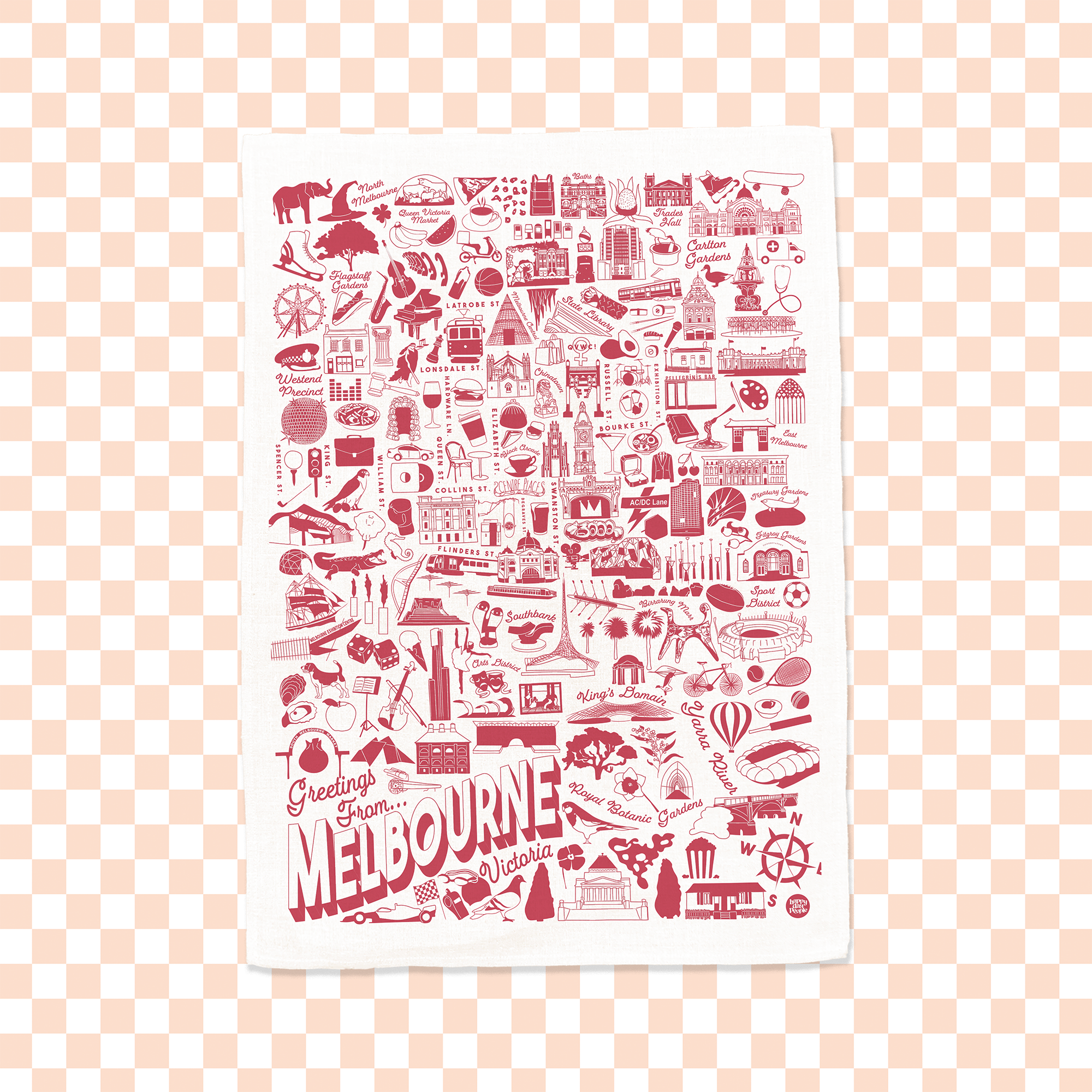 Melbourne Map Tea Towel Printed Cotton Tea Towel