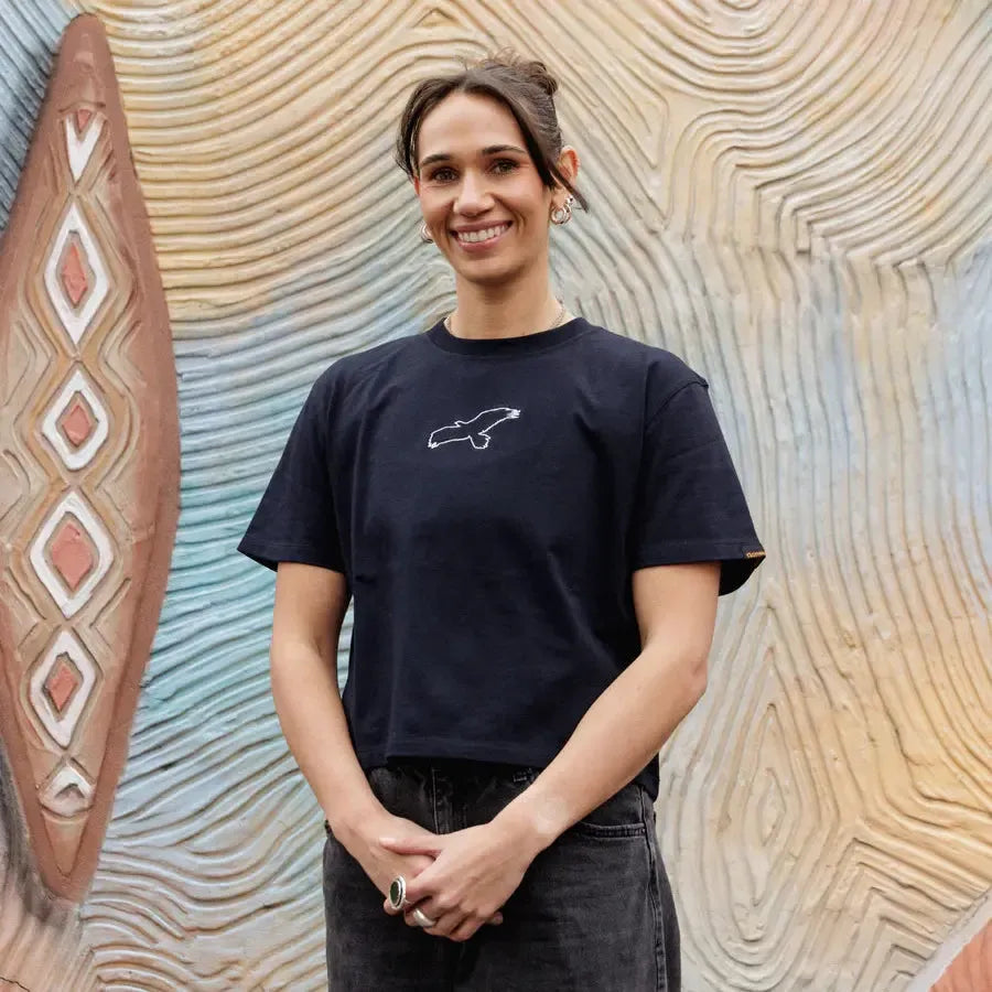 The Bunjil Icon Tee celebrates culture and identity through meaningful Aboriginal designs. On the front, it features an embroidered design of Bunjil, the wedge-tailed eagle — the spiritual creator and protector of the Kulin Nation in Victoria.