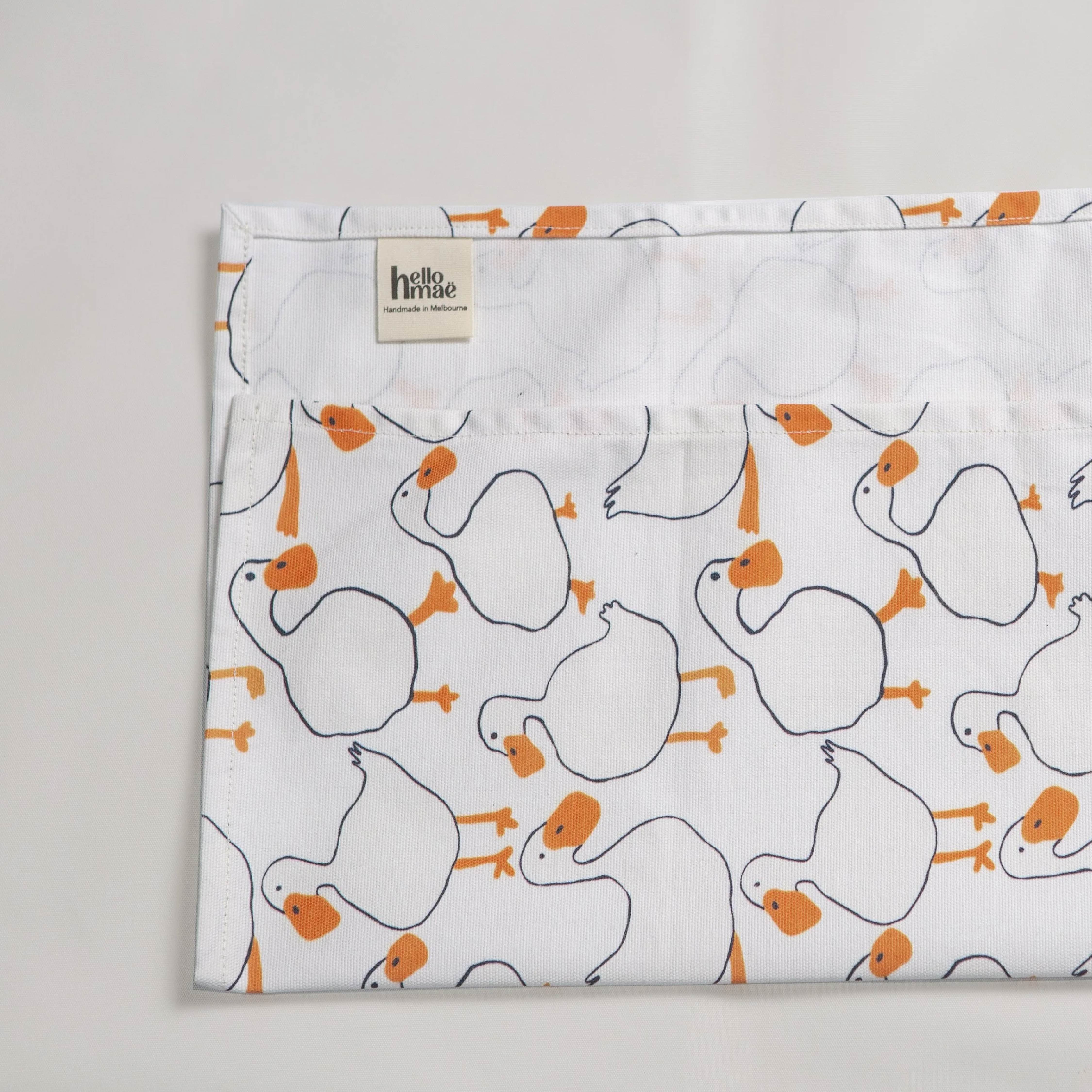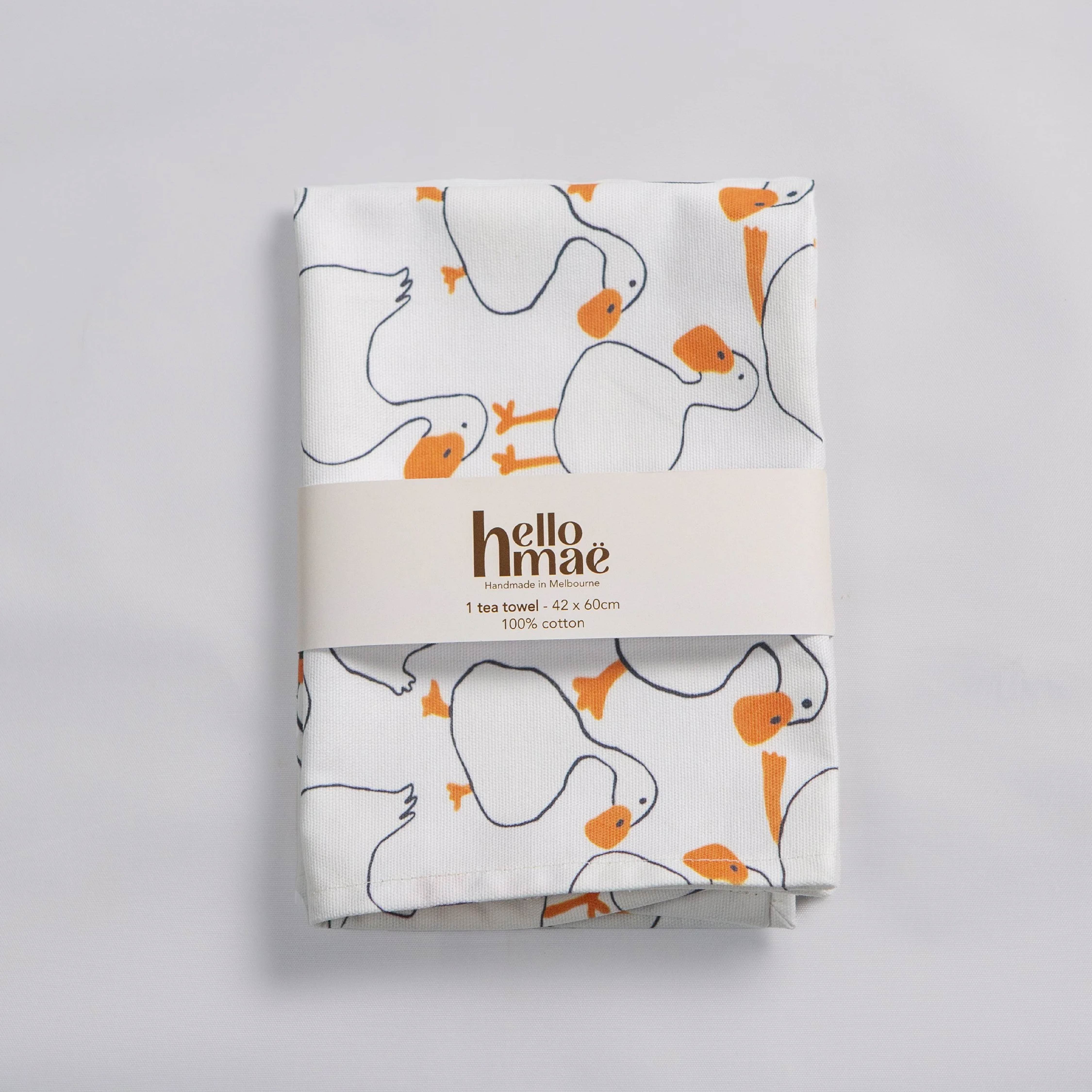 A happy little duck to brighten up your kitchen. This tea towel features hand-drawn ducks— sweet, slightly silly, full of personality.— and very ready to dry your dishes.