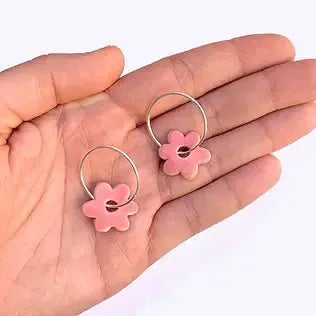The Mini Hoop earrings feature lightweight hand built ceramic pieces suspended on 25mm sterling silver infinity hoops, handpainted with our Salmon pink glaze. As every pendant has been made by hand they are each unique and may differ slightly from pictures.