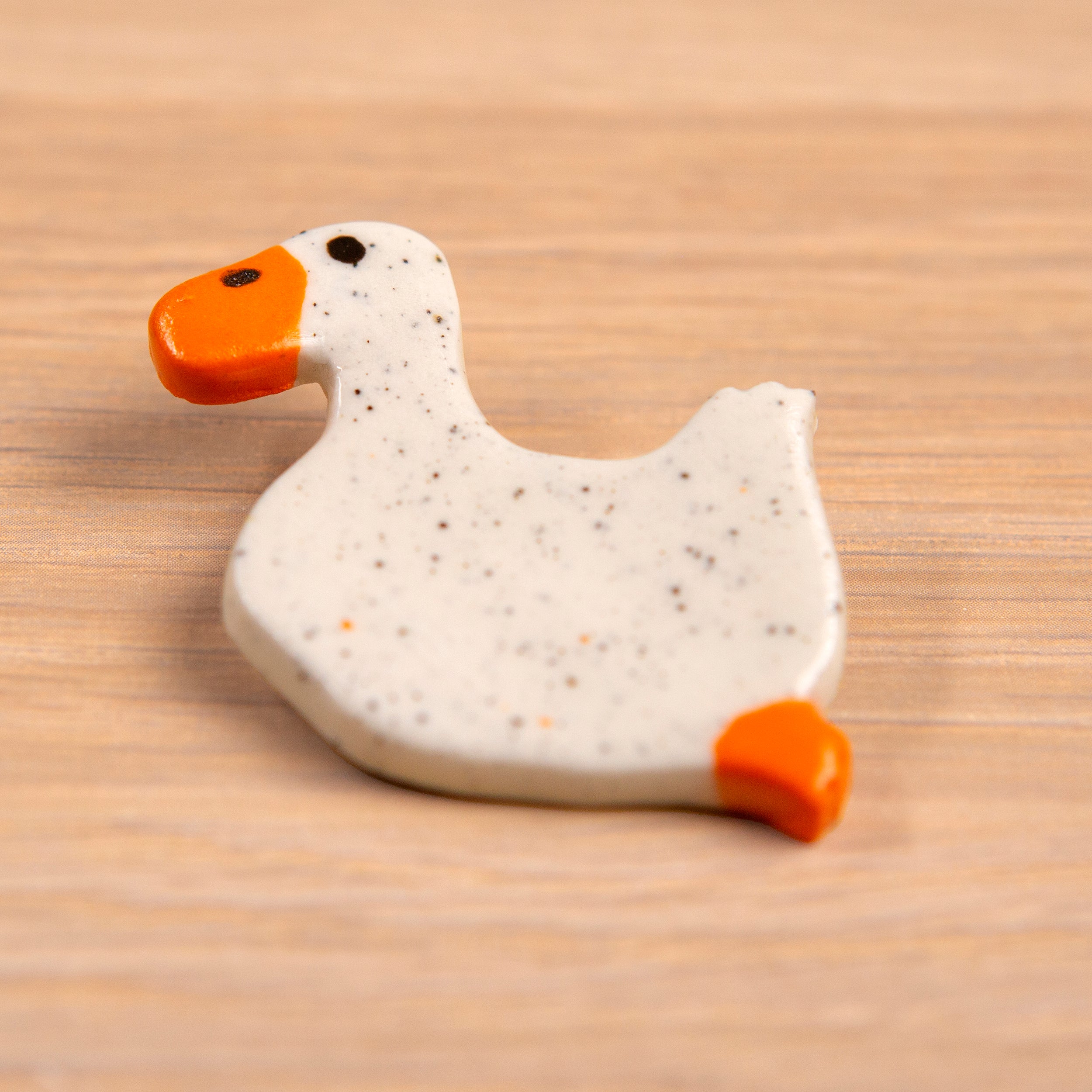 Add a little quack to your outfit with this handmade ceramic swimming white duck brooch - a tiny waddling friend to pin on your jacket, tote, or overalls. Each duck is hand-shaped, hand-painted, and glazed with love in our Melbourne studio, making every piece slightly different (just like real ducks!).