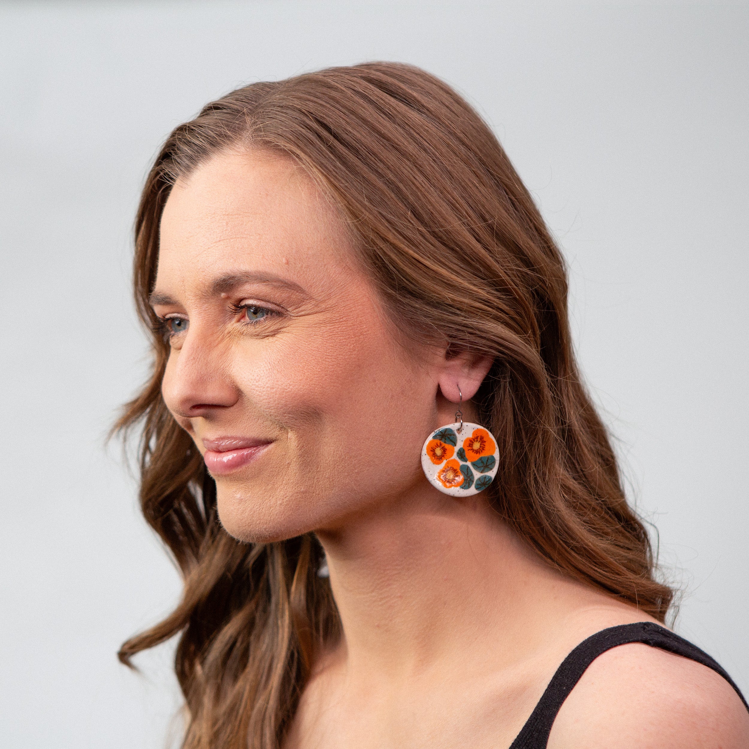 Add a pop of playful charm to your look with these handmade ceramic drop earrings, featuring a one-tier nasturtium flowers design. Lightweight and full of personality, they’re the perfect everyday accessory or a thoughtful handmade gift.