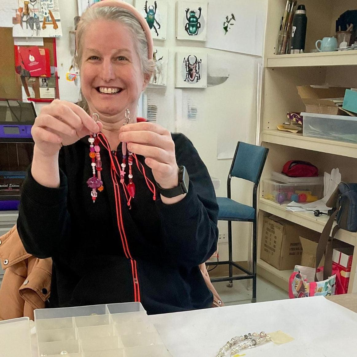 Each charm is crafted from donated, recycled beads and lovingly handmade by woman artist living with disability - Mya Wilson.