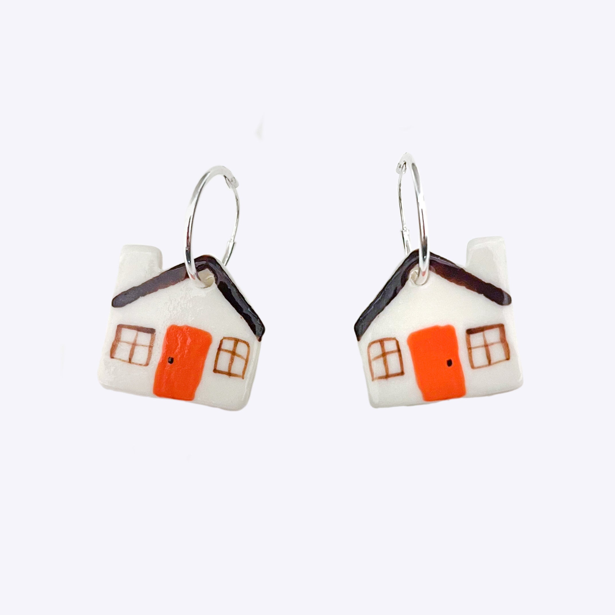 The House mini hoop earrings feature lightweight hand built ceramic pieces suspended on 16mm sterling silver sleepers.