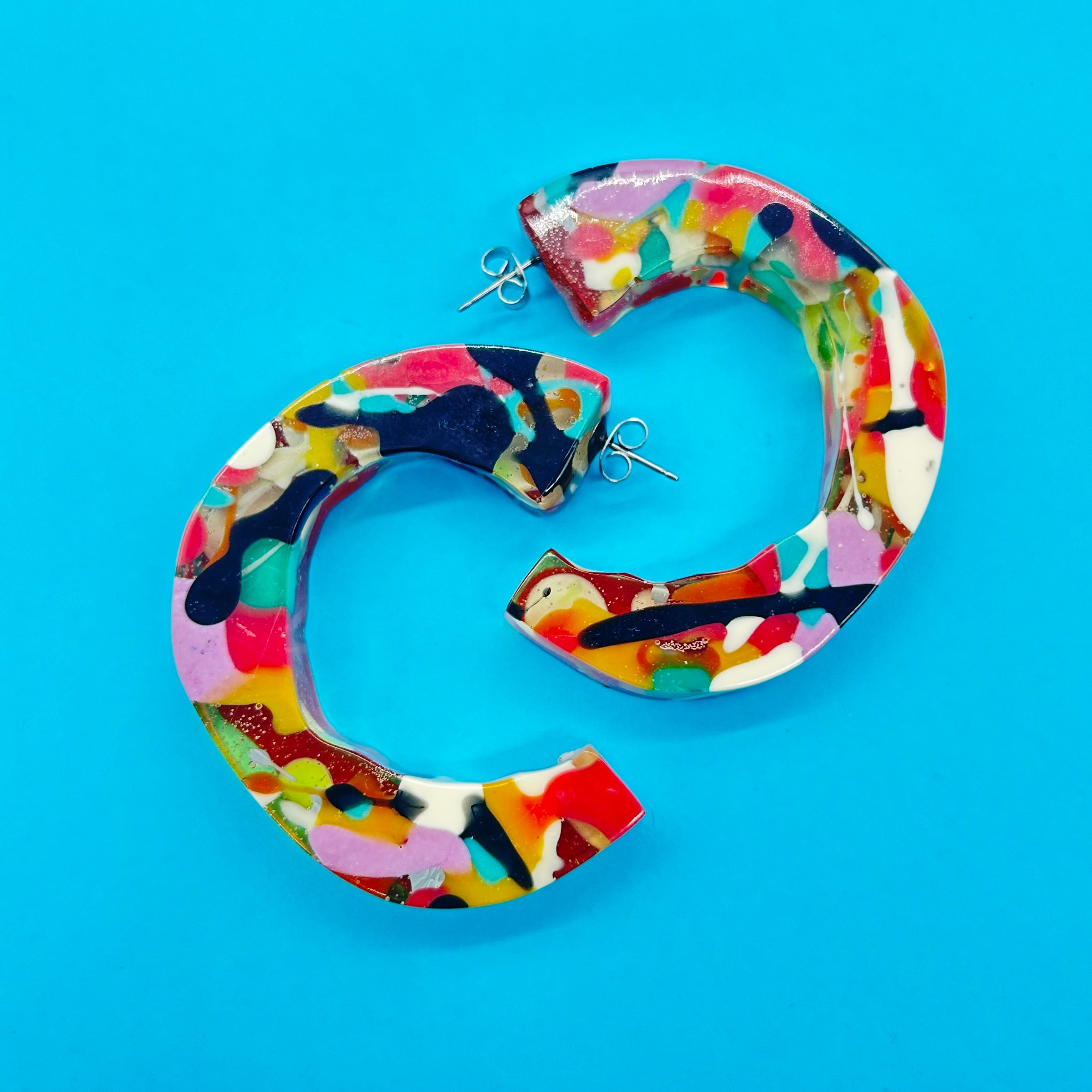 These resin Chunky Hoops are bright, fun and light weight making them a pleasure to wear as your everyday/anywhere earrings, or as that special occasion pair.