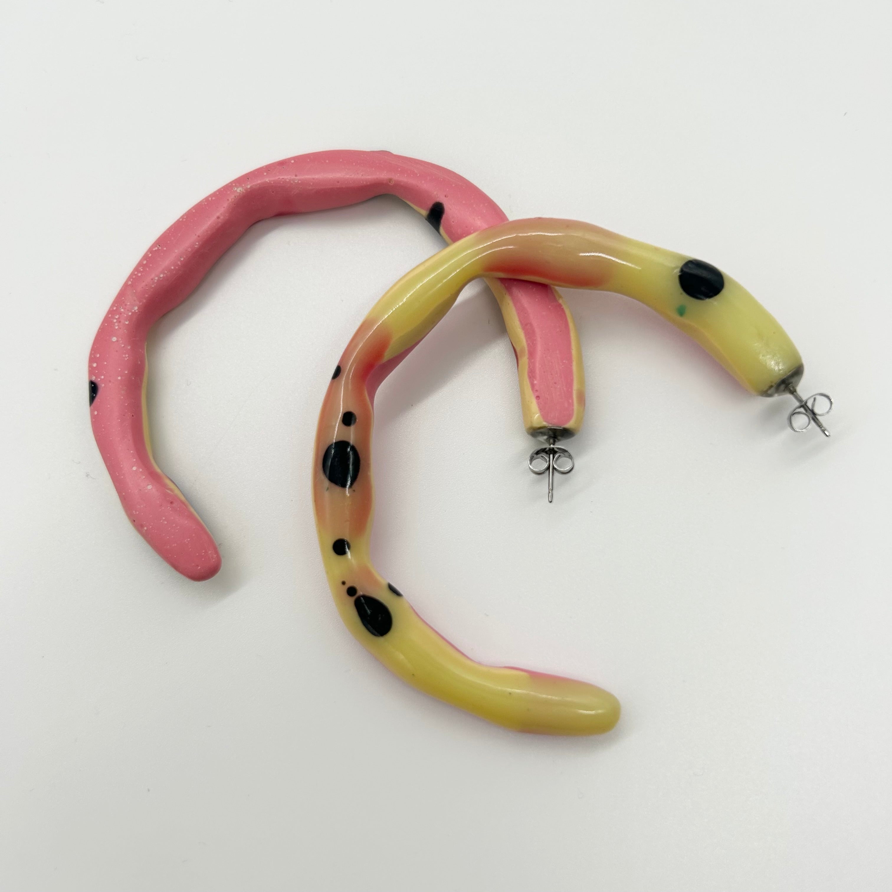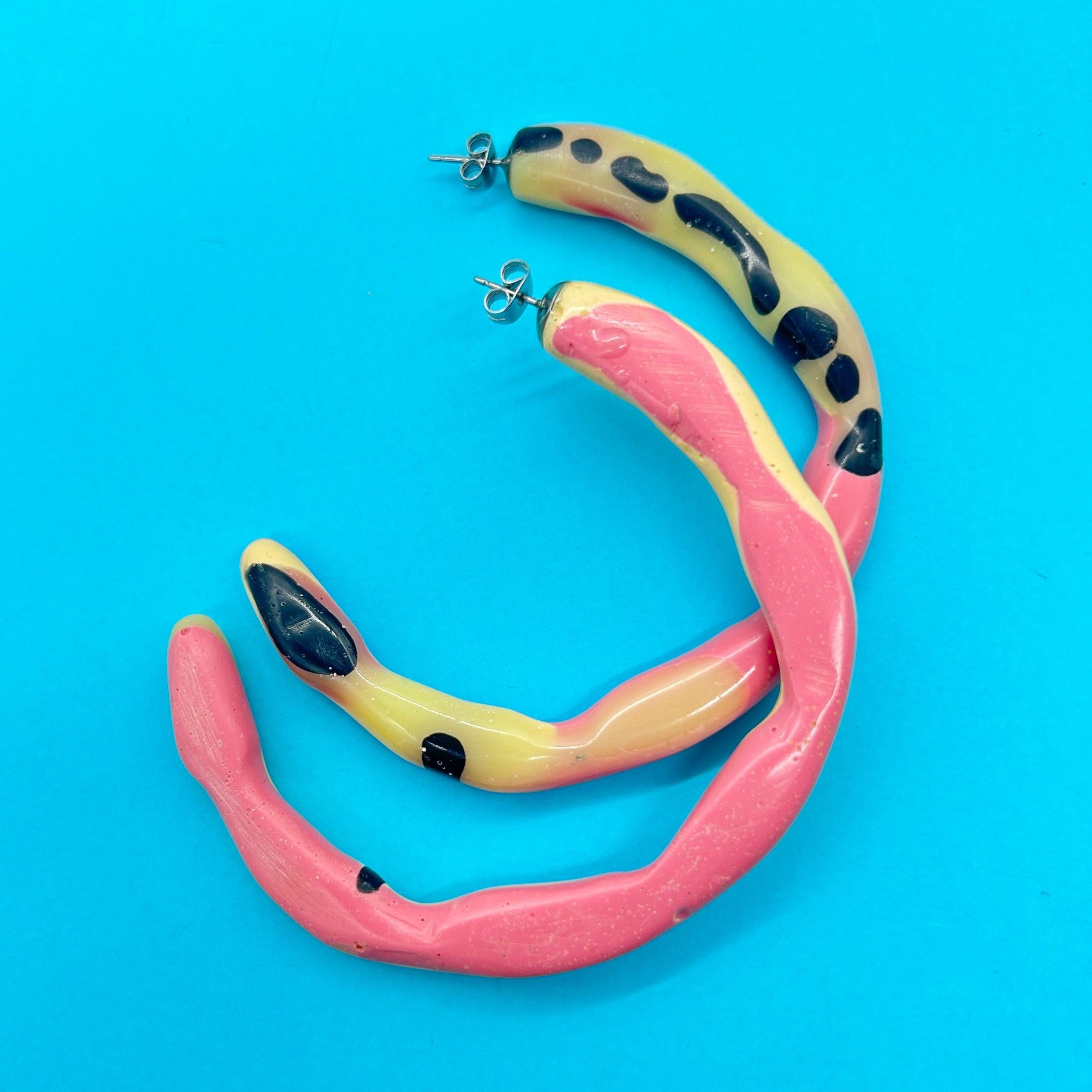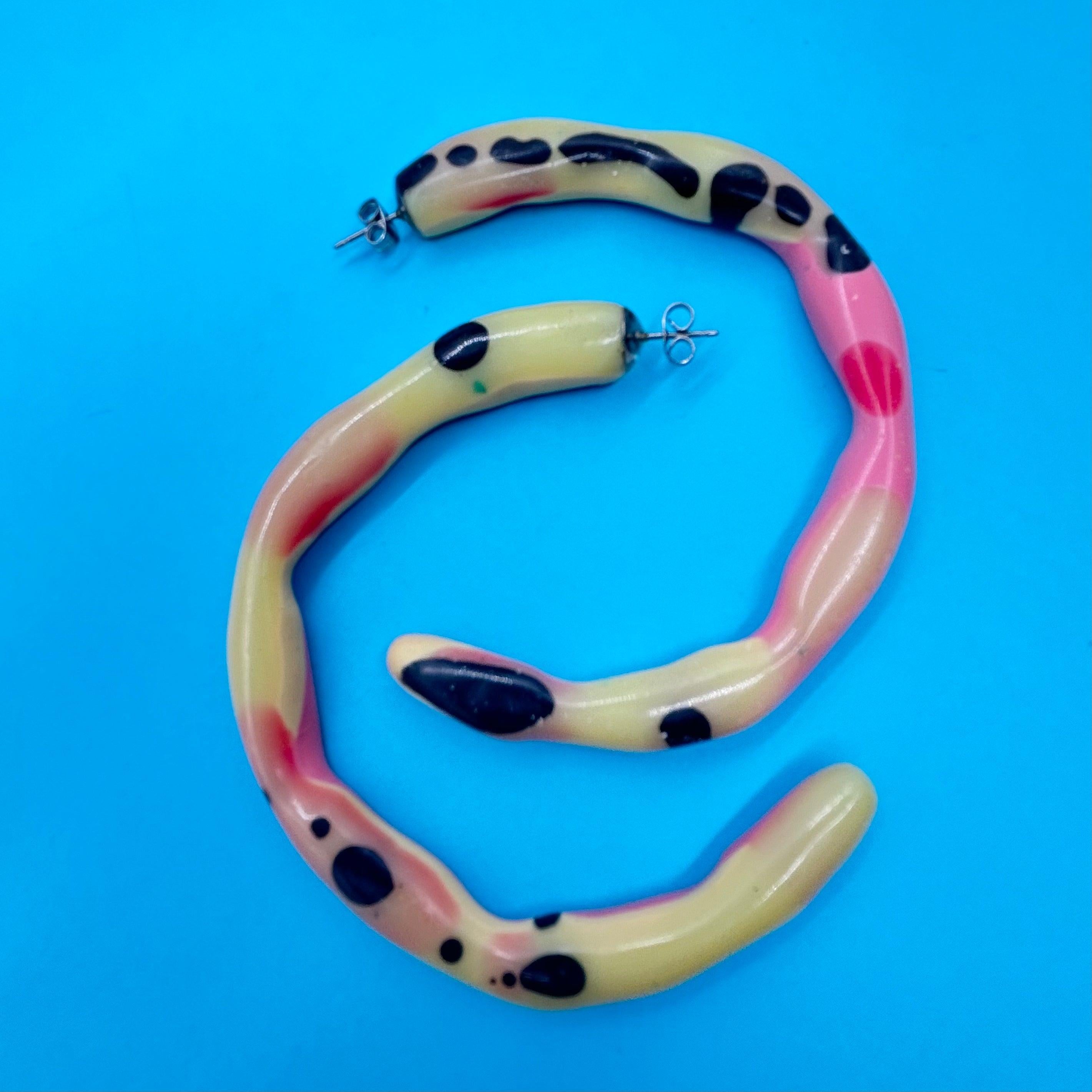 These wobbly resin Chunky Hoops are bright, fun and very light weight making them a pleasure to wear as your everyday/anywhere earrings, or as that special occasion pair.