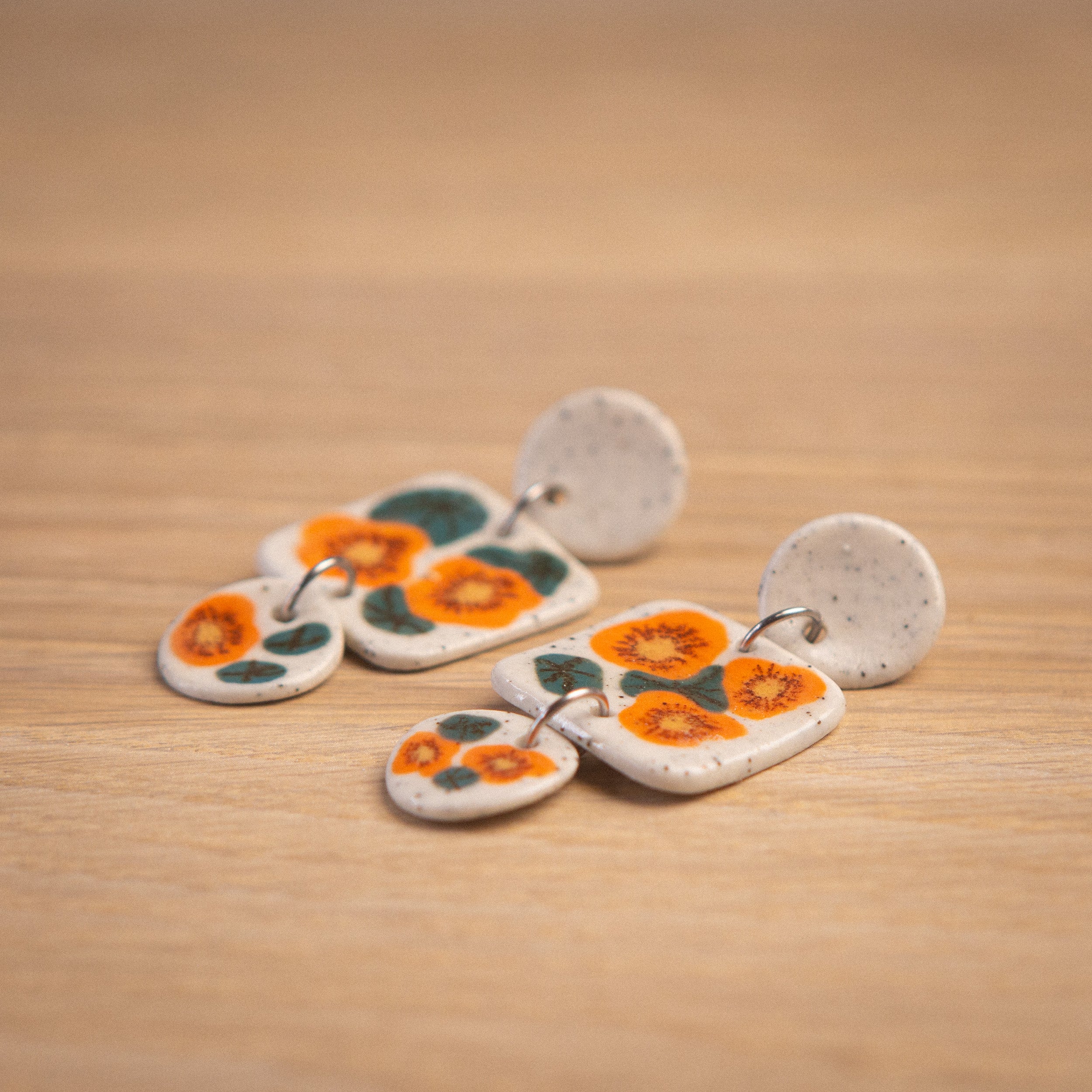 3 Tier Ceramic Earring - Nasturtium Flowers