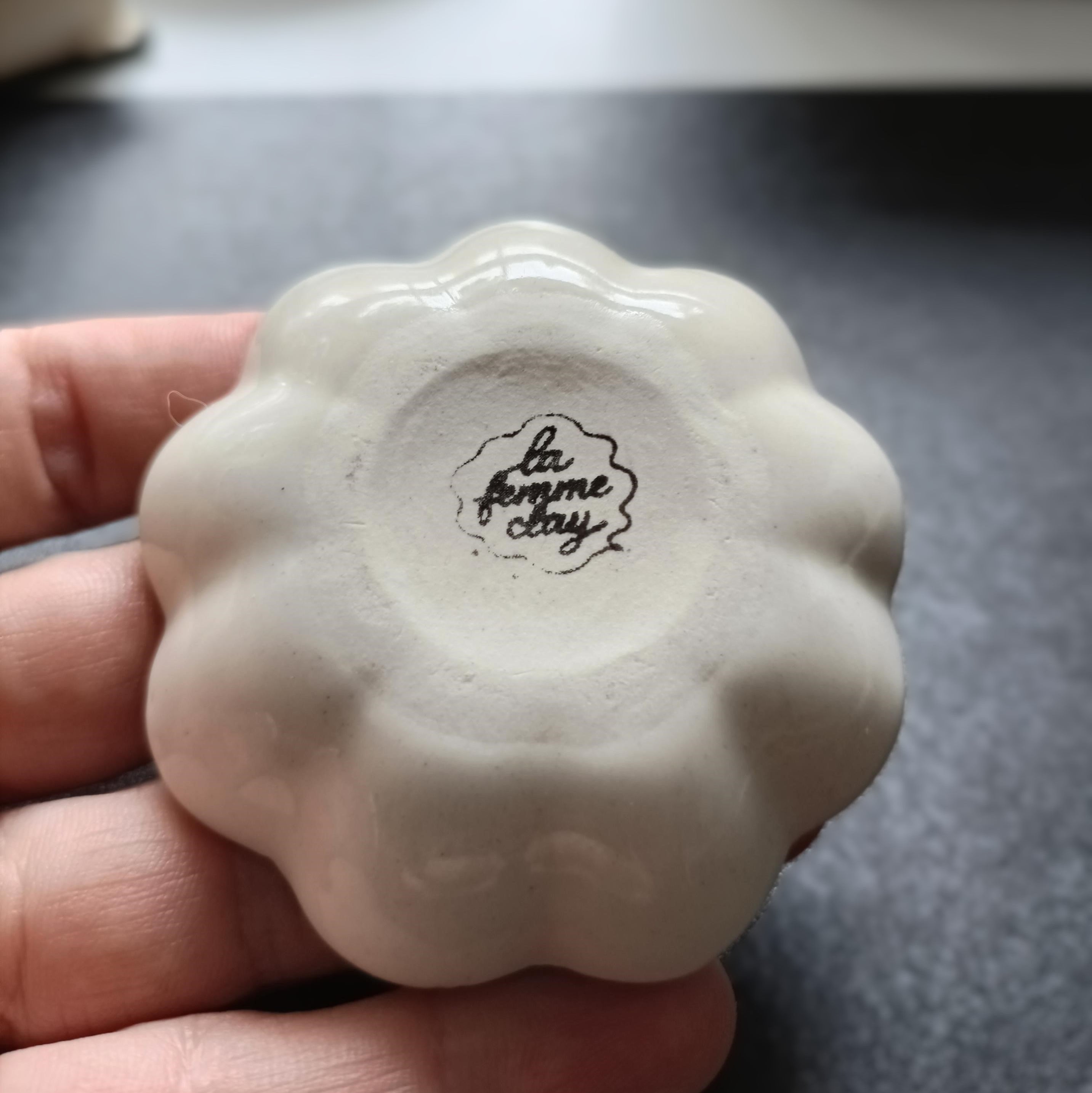 A small hand-shaped ceramic dish, fired and glazed for subtle texture and character.