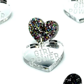 Silver mirror Girl Power heart.