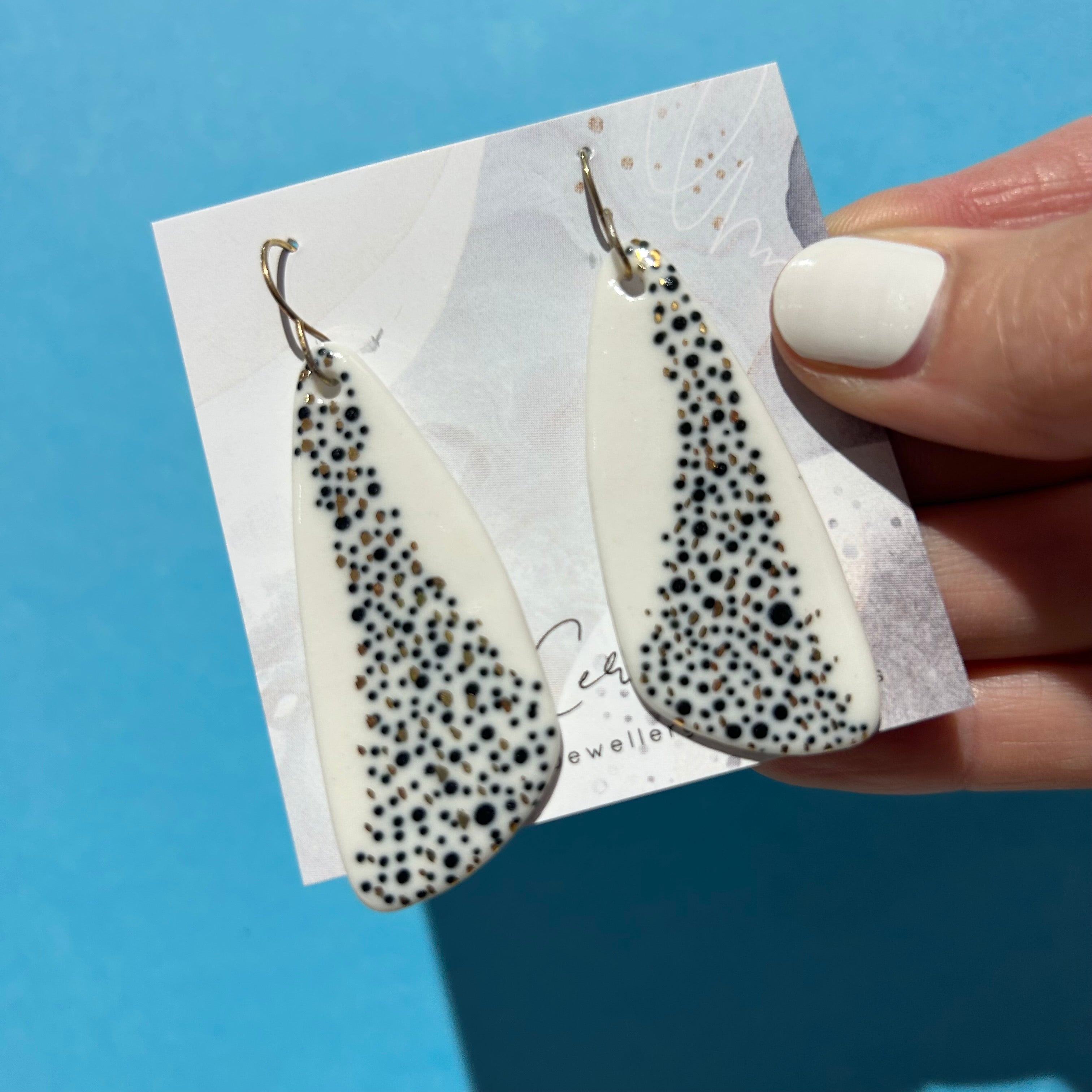 Earrings are made with white Australian porcelain and have been handmade, glazed and fired twice to a high temperature making the pieces robust yet light.
