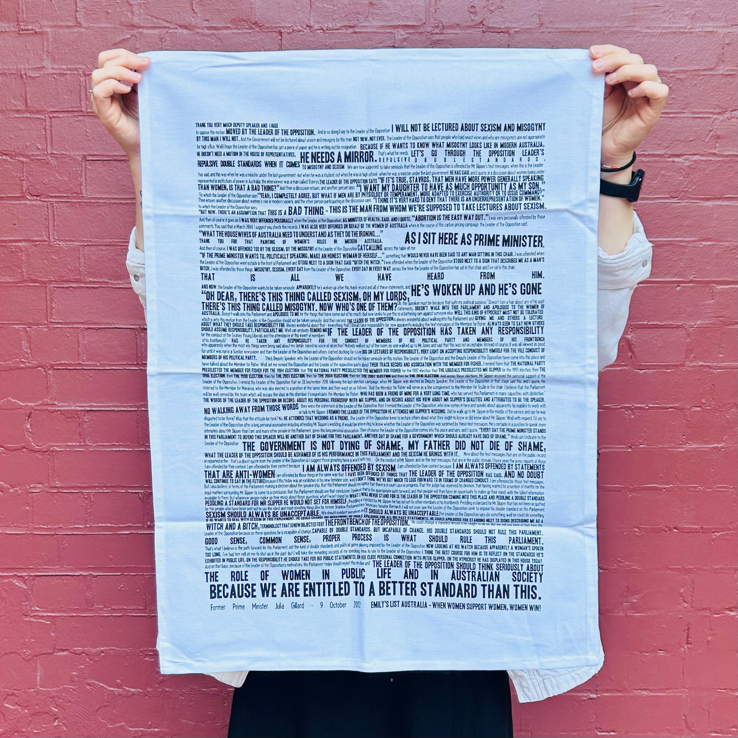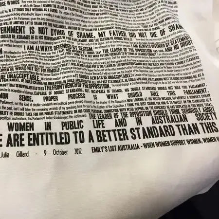 Julia Gillard's iconic speech immortalized on a tea towel!