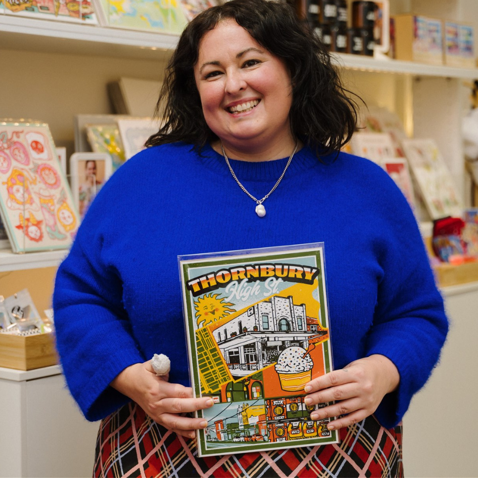An ode to High st, Thornbury. Spot your favourite neighbourhood gems. Including Thornbury Picture House, Psarakos, and Cafe Gummo. This nostalgic design was created after visiting a vintage tea towel exhibit.