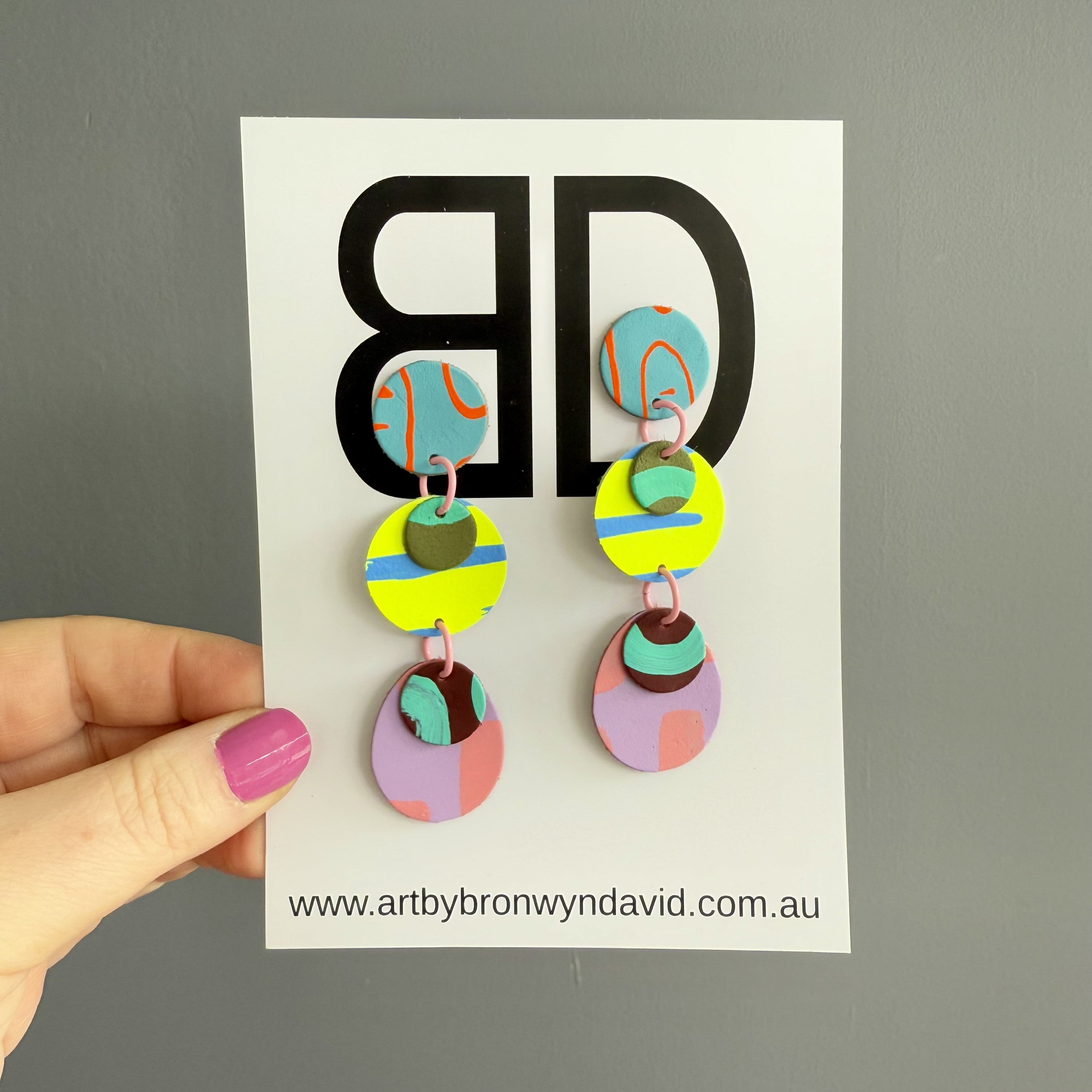 Bronwyn is a contemporary Indigenous artist who turns her paintings into wearable art. Using acrylics, mixed media and leather, her earrings and accessories celebrate ancestry, land and waterways - each piece a vibrant, textured work that makes a statement and adds cultural meaning to your collection.