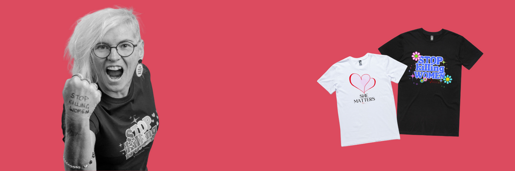Sherele Moody is a researcher focused on femicide and child deaths in Australia. She designed a range of tees, hoodies and totes to raise funds for her work documenting violence against women and children. Unashamedly feminist, Sherele’s RED HEART merch is both activist and commemorative. She also collaborates with artists to create evocative female-focused pieces, with every item sold directly supporting Australian Femicide Watch, the RED HEART Memorial, and the She Matters project.