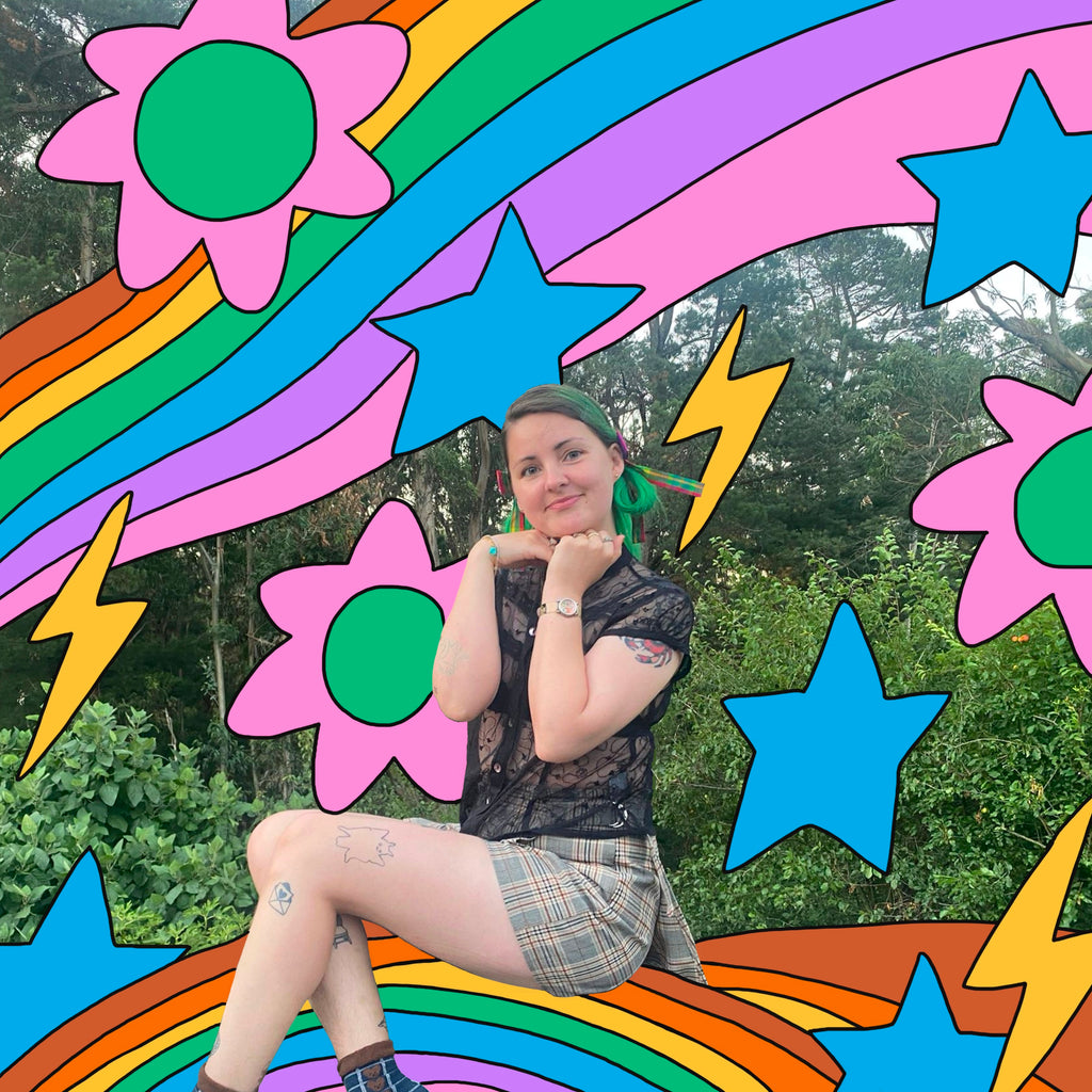 Tegan Iversen is an artist, illustrator, and curator living on the lands of the Wurundjeri and Boonwurrung peoples in Naarm (Melbourne). She studied Fine Art and Visual Art at the Victorian College of the Arts and co-runs the collective Gems, creating arts opportunities for women and non-binary people. Tegan’s work celebrates community, play, family, love, and fun, with a colourful, cute, kitsch, and quirky aesthetic that sparks joy and connection.