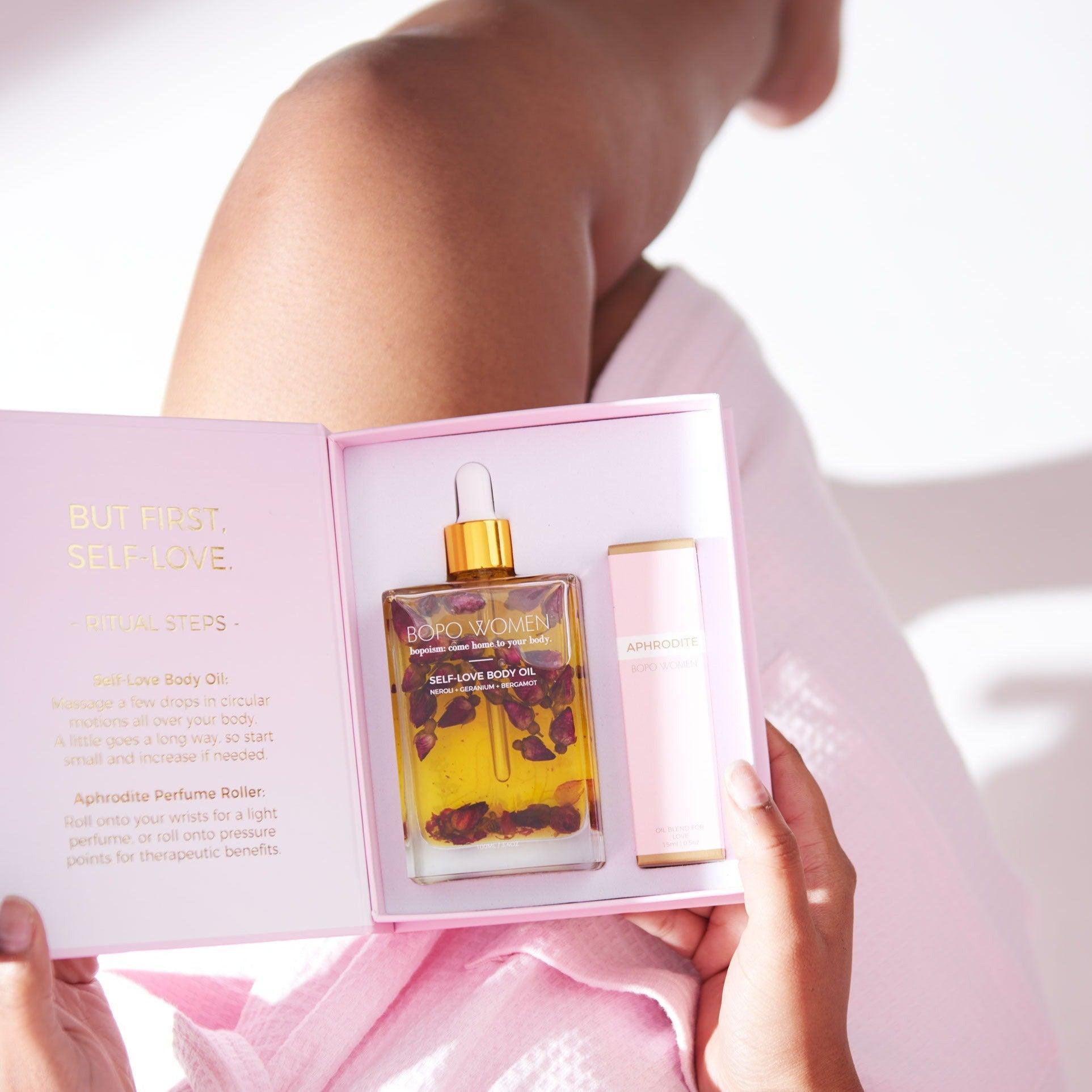 This bestselling gift set arrives in our Self-Love Gift Box and features our best selling Self-Love Body Oil and our Aphrodite Crystal Infused Essential Oil Roller.