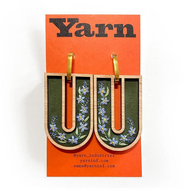 Green Royal Bluebells Hand Embroidered Earrings