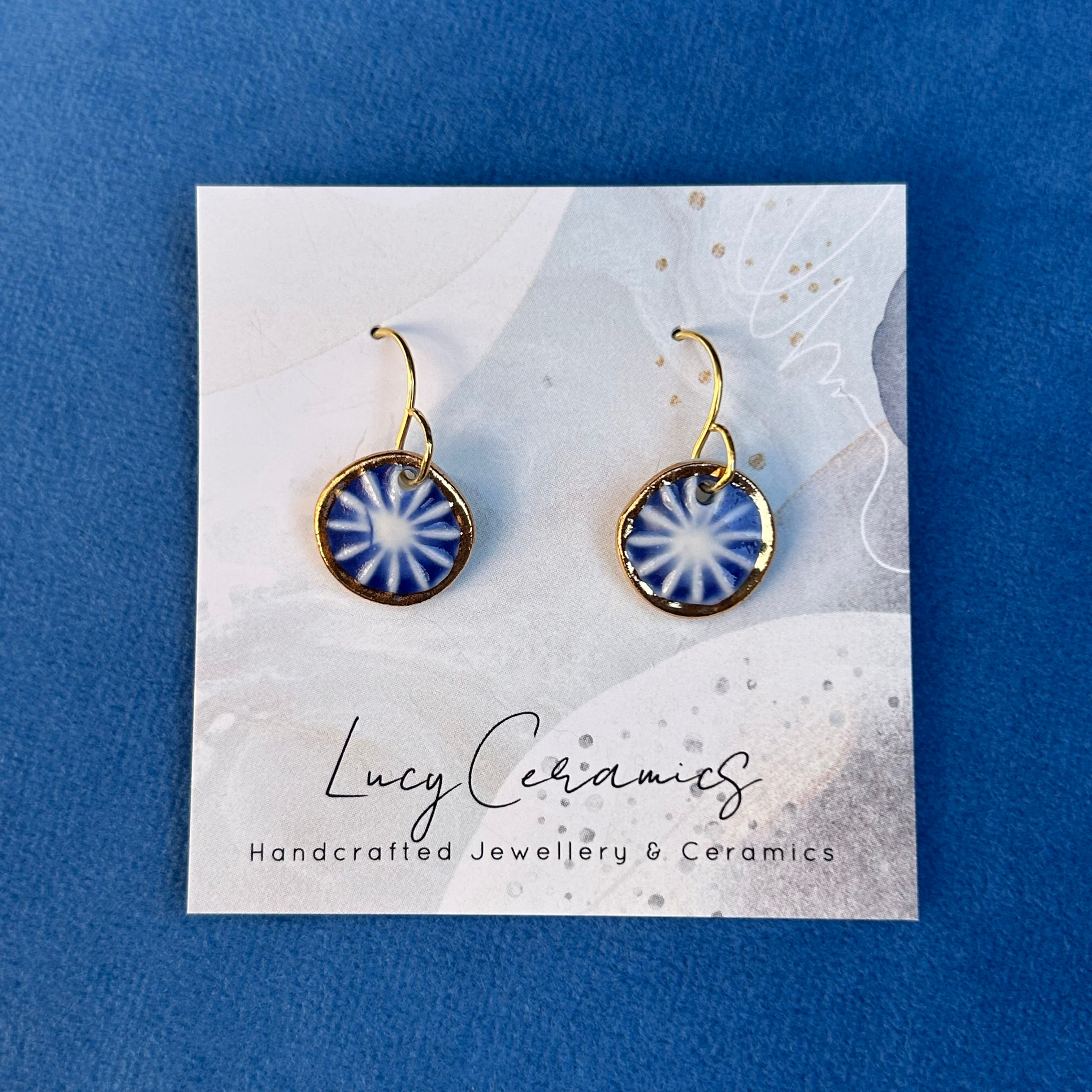Blue burst embossed Porcelain petite circle drop earrings