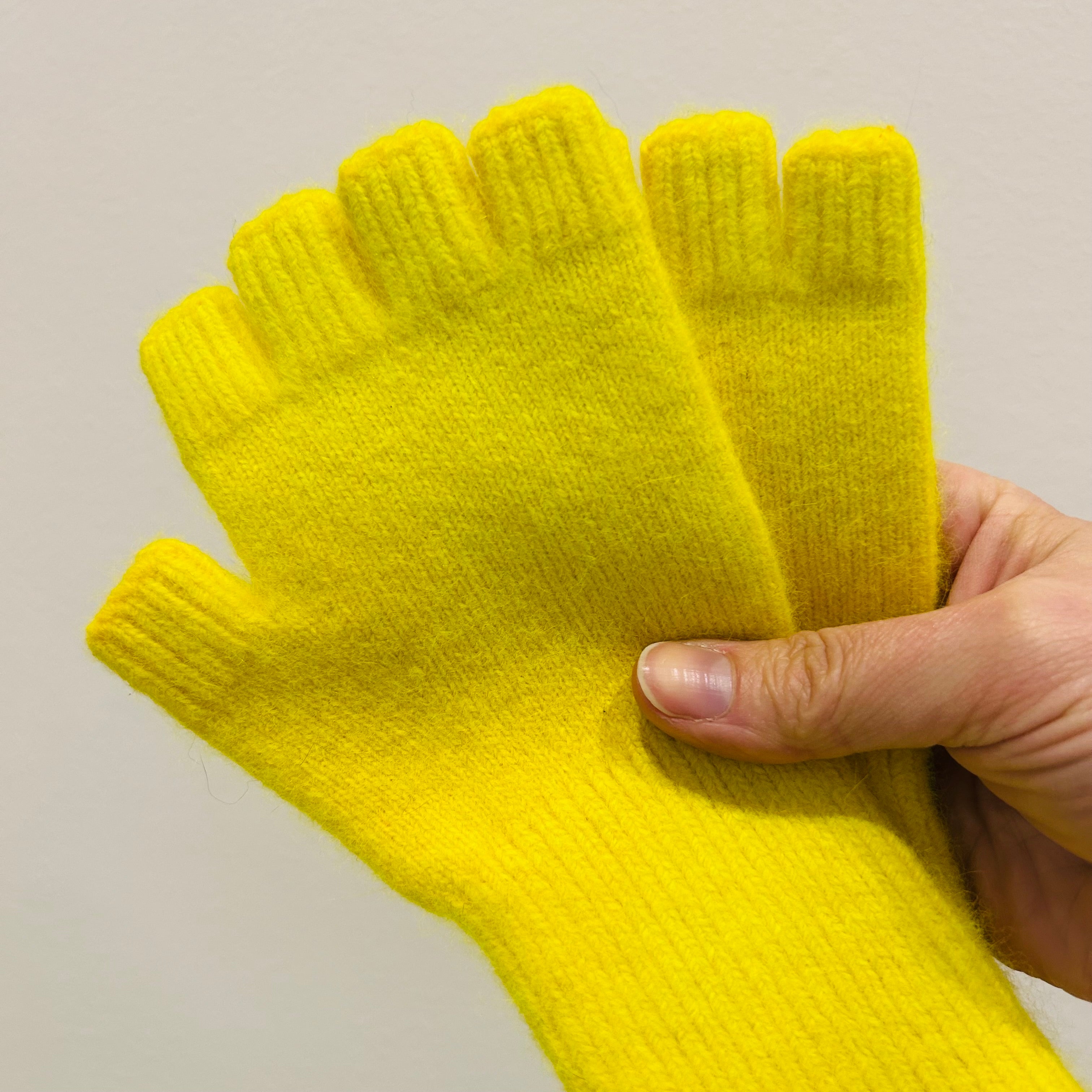 Knitted and dyed in house at Penelope Durston's Fitzroy studio, these fingerless gloves are a luxurious Lambswool and Angora blend. Oh so soft and cosy - the perfect accessory to get you through a chilly Melbourne winter.‚