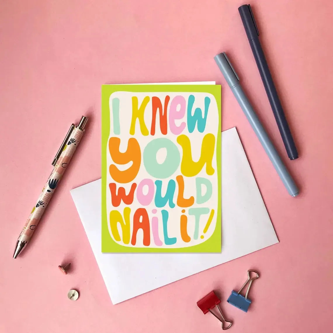 A fun and bright card for someone who has nailed it. Maybe they got a new job, their first job, a promotion or they graduated.