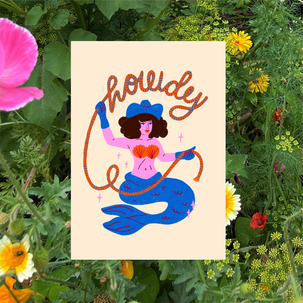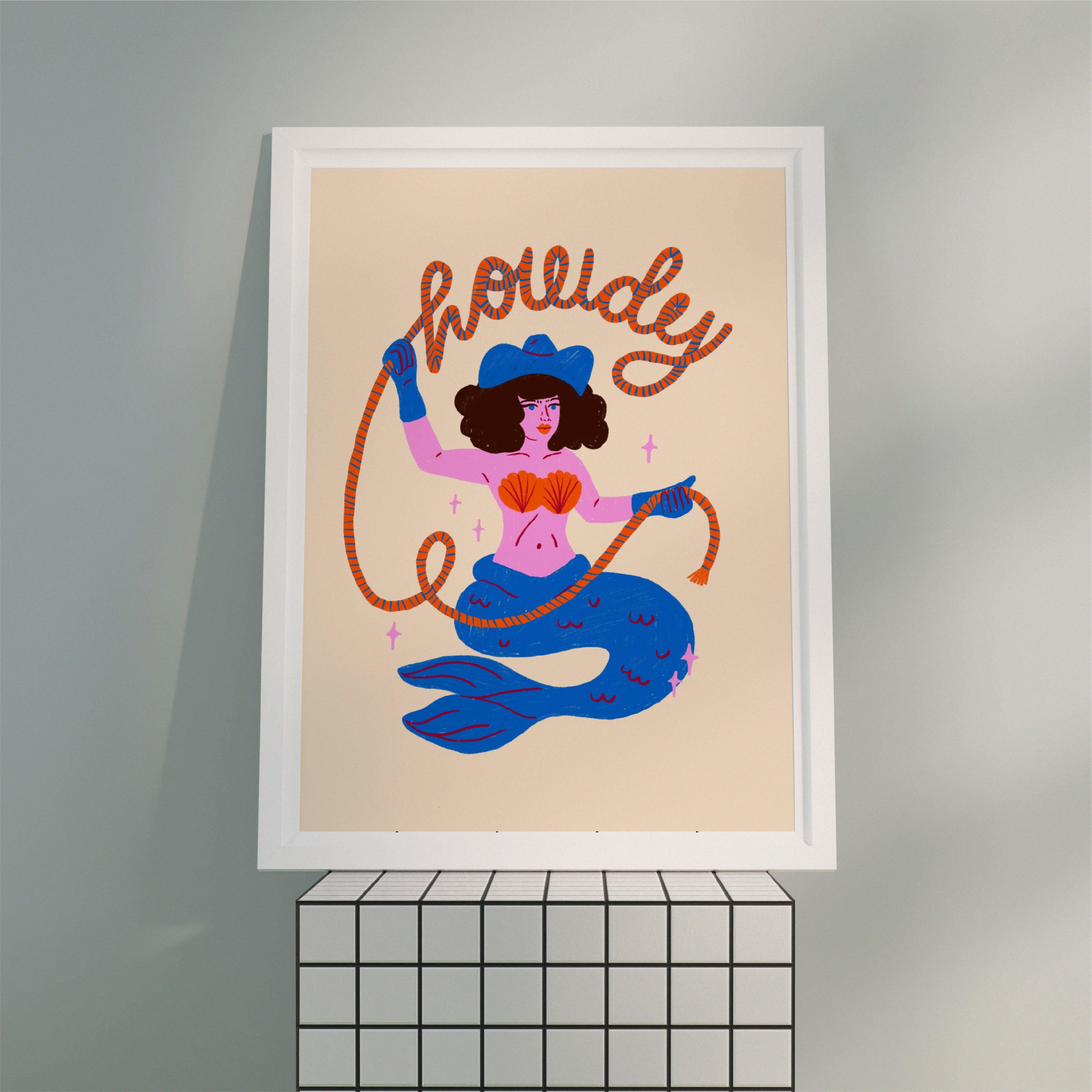 Howdy Print is printed on 300gsm silk stock with a slight shine. She is printed locally and wrapped with love by me. Please keep her out of direct sunlight to maintain her longevity.
