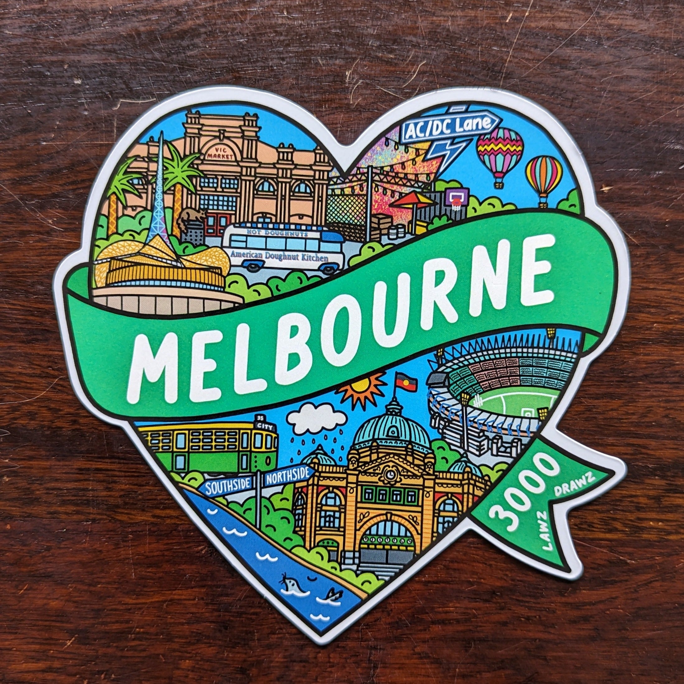 High quality full colour magnet featuring the Melbourne artwork in a heart shape.