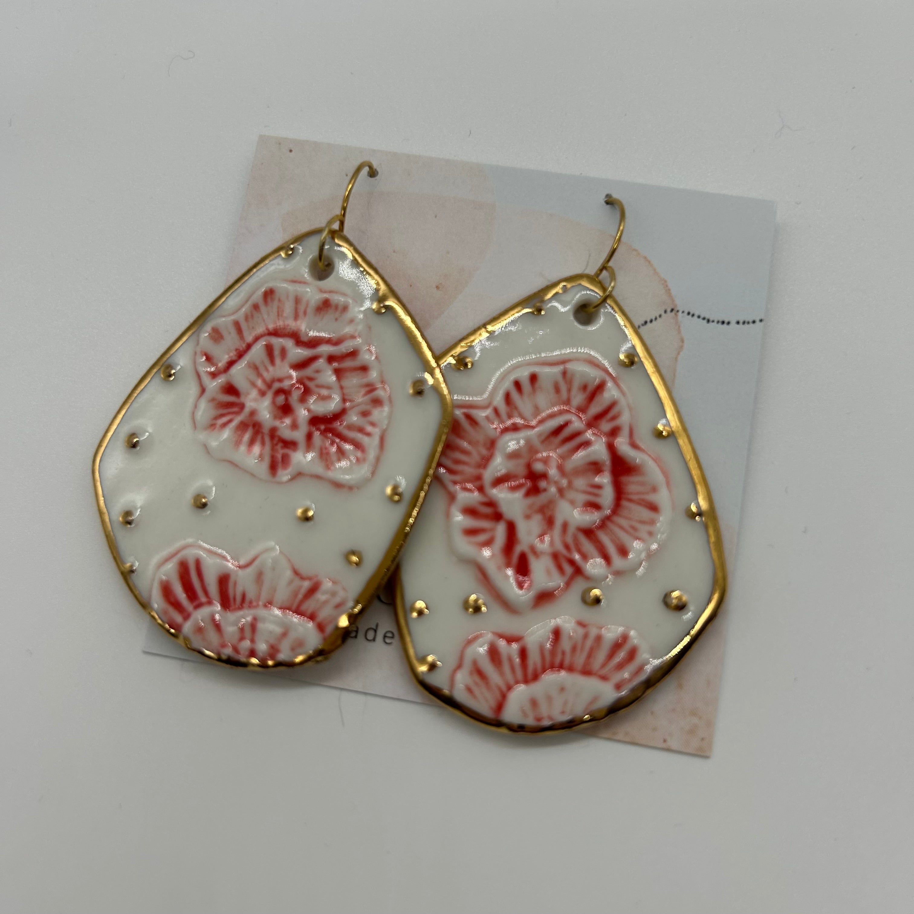Pink Flower Emboss Porcelain geometric drop earrings