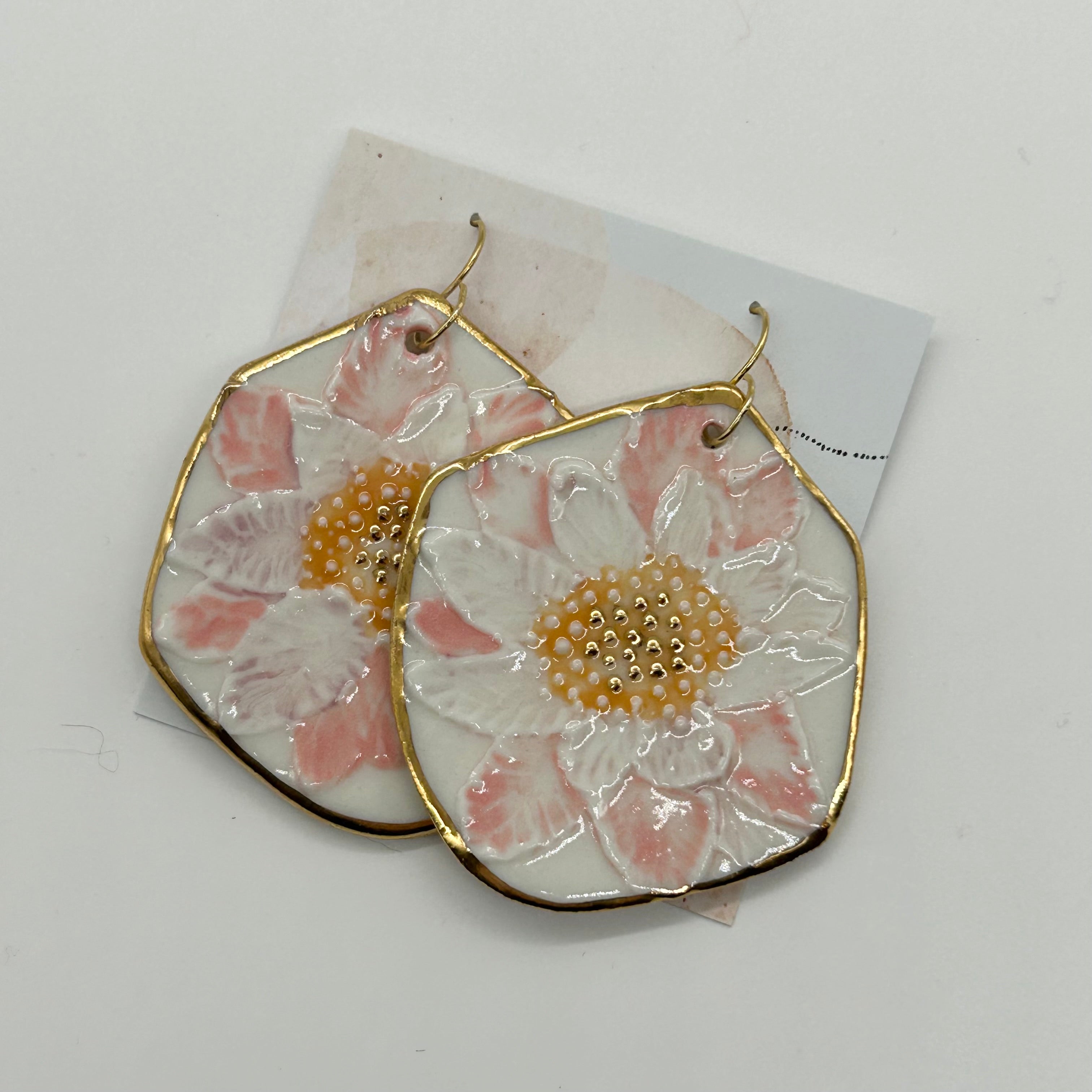 Earrings are made with white Australian porcelain and have been handmade, glazed and fired twice to a high temperature making the pieces robust yet light.